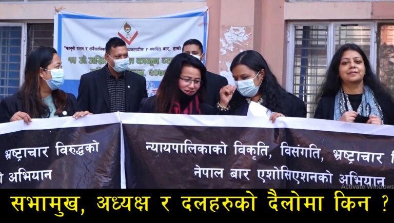 मंसिर ६, काठमाण्डौ । प्रधानन्यायाधीस चालेन्द्र समसेर राणाको राजिनामा माग्दै निरन्तर रुपमा विरोध कार्यक्रम गर्दै आएको नेपाल बार एसोसियन कुनै पनि अवस्थामा यो कार्यक्रम नरोकिने दाबी गर्दै छ । आफ्नो विरोध कार्यक्रमलाई जसरी भए पनि सफल पार्न नेपाल बार जुनसुकै धरातलमा झर्न समेत तयार देखिएको छ । त्यही भएर राज्यका महत्वपूर्ण तीन संवैधानिक निकाय बीच एकआपसमा बेमेल ल्याउने कार्य गर्नबाट समेत नेपाल बार हच्किएको छैन । सरकार र राजनीतिक दललाई प्रधानन्यायाधीस राणाविरुद्ध महाभियोग लगाउन उस्काउँदै आएको नेपाल बारले अब व्यवस्थापिकालाई समेत न्यायपालिकाको विषयमा हस्तक्षेप गर्न आग्रह गरेको छ ।