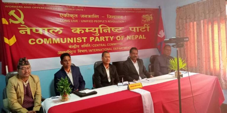 काठमाडौं, ७ मंसिर । नेपाल कम्युनिस्ट पार्टीका महासचिव नेत्रविक्रम चन्द विप्लवले चिनियाँ कम्युनिस्ट पार्टीसँगको बैठकलाई सम्बोधन गरेका छन् । उनले भर्चुअल बैठकमा चिनियाँ कम्युनिस्ट पार्टीको १९औं केन्द्रीय समितिको छैठौं विस्तारित बैठकले ऐतिहासिक निर्णय लिएको भन्दै शुभकामना व्यक्त गरेका थिए ।