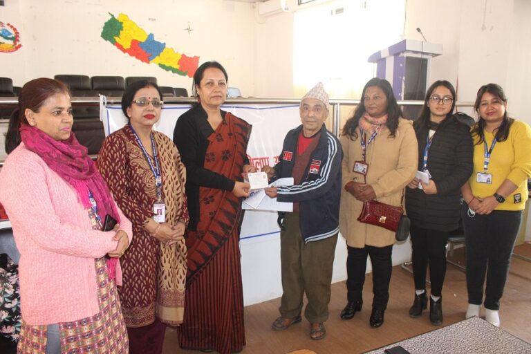 म्याग्दी, ९ मङसिर: म्याग्दीको बेनीका द्वन्द्वपीपडित कृष्णप्रसाद श्रेष्ठलाई बुधबार द्वन्द्वपीपडित परिचयपत्र वितरण गर्दै सत्यनिरुपण तथा मेलमिलाप आयोगकी सदस्य मन दाहाल ।-तस्वीर : सन्तोष गौतम-रासस