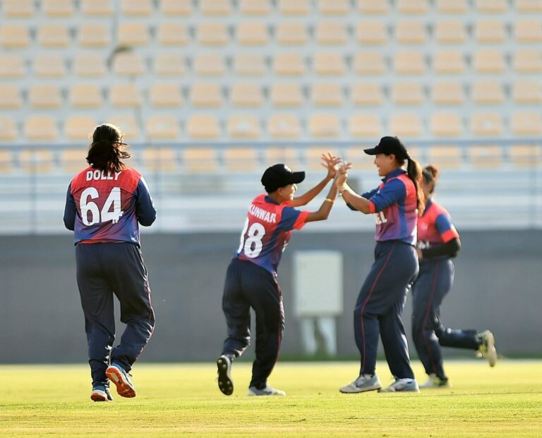 नेपालका लागि संगिता राई र कप्तान रुविना क्षेत्रीले समान तीन÷तीन विकेट लिए ।