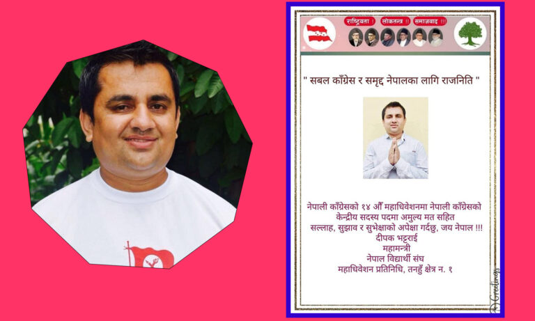 नेविसंघ महामन्त्री भट्टराईद्धारा कांग्रेस केन्द्रीय सदस्यको उम्मेदवारी घोषणा