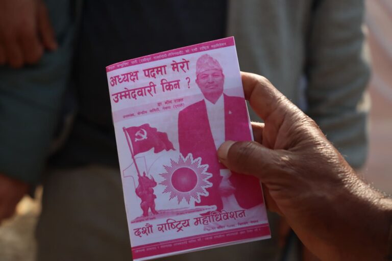 आजपनि बन्दसत्रको हलभित्र प्रवेश गर्न लामबद्ध भएका प्रतिनिधिहरुलाई रावलका कार्यकर्ताहरुले ‘मेरो उम्मेदवारी किन’ लेखिएको पर्चा वितरण गरेका थिए । भीम रावलको पर्चामा रावलले अध्यक्षमा उम्मेदवारी दिनुपर्नाका कारणबारे उल्लेख गरिएको छ ।