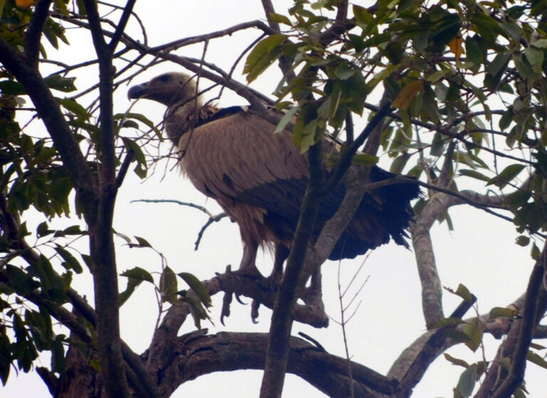 कञ्चनपुर, १५ मंसिर । शुक्लाफाँटा राष्ट्रिय निकुञ्जको सनवोरा नदी किनाराको रुखमा बसेको दुलर्भ खैरो हिमाली गिद्ध । हिउँदको समयमा हिमाली क्षेत्रबाट बसाइ सरेर हिमाली गिद्ध यहाँ आउने गर्छन् । तस्बिरः राजेन्द्रप्रसाद पनेरु÷रासस