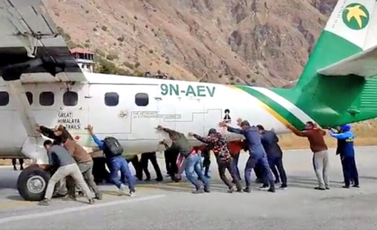 –प्रेम रौले चारपाङ्ग्रे हलुका सवारीसाधनलाई मानिसहरुले धकेलेको त तपाईं हामी सबैले देखेका छौं । तर बुधबार कोल्टी विमानस्थलमा एउटा फरक दृश्य देखियो, यात्रुहरुले नै जहाज धकेलिरहेको ।