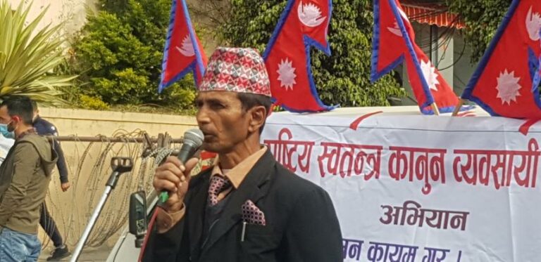 काठमाडौं, १७ मंसिर । नेपाल बारले गलत उद्देश्य राखेर न्यायालयलाई नै अस्तव्यस्त गराउन आन्दोलन गरेको भन्दै स्वतन्त्र कानून व्यवसायीहरुले प्रतिकार गर्दै आएका छन् । उनीहरुले आज (शुक्रबार) पनि बारको आन्दोलनविरुद्ध प्रदर्शन जारी राखेका छन् ।