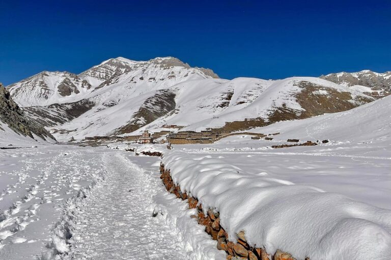 जाजरकोट, २१ मङ्सिर: उपल्लो डोल्पामा हिमपातपछि डोल्पोबुद्ध गाउँपालिका –१ ‘धो’ गाउँका घरहरु सेताम्य भएका छन् । मौसम खुलेसँगै चाँदी झैं टलक्क टल्किएका छन् ।-तस्वीर : हेमन्त केसी, रासस