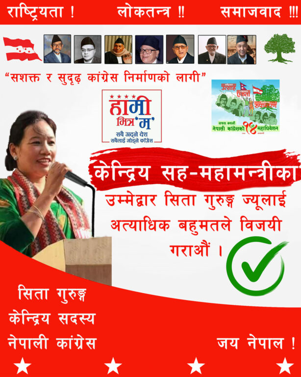कांग्रेस सहमहामन्त्रीमा सीता गुरुङको उम्मेद्वारी घोषणा