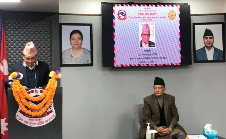 काठमाडौं, २२ मंसिर । राष्ट्रकवि माधवप्रसाद घिमिरेले नेपाली साहित्यको क्षेत्रमा पु¥याएको योगदानको कदरस्वरुप उहाँको मुखाकृति अङ्कित हुलाक टिकट प्रकाशन गरिएको छ । राष्ट्रकवि घिमिरेले नेपालको राष्ट्रिय गौरवलाई उचाइमा पु¥याउन दिएको अतुलनीय योगदानको उच्च कदर गर्दै आज सूचना, सञ्चार तथा प्रविधिमन्त्री ज्ञानेन्द्रबहादुर कार्कीले सो हुलाक टिकटमा टाँचा प्रदान गरे ।