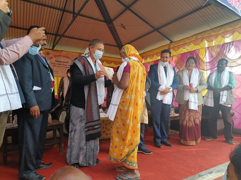 काठमाडौं, २३ मंसिर । भूमि, व्यवस्था, सहकारी तथा गरिवी निवारणमन्त्री शशी श्रेष्ठले सप्तरीको अग्नीसाइर कृष्णसवरण गाउपालिकाको गाउव्लकमा रहेका भू्मिहिनहरुलाई आज जग्गा धनी प्रमाण पुर्जा वितरण गरेकी छिन् ।