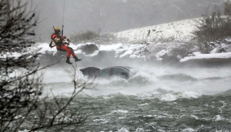 ट्विटरमा पोस्ट गरेको भिडियोमा बुधवार अपराह्न महिलाको गाडी नियाग्रा फल्समा दुई घन्टा जति फसेको देखिन्छ । अमेरिकाको न्युयोर्कस्थित प्रोस्पेक्ट पोइन्टमा कार फसेको हो । अधिकारीहरू अपराह्न १ बजे घटनास्थलमा पुग्दा महिलाले हलचल गरेकी थिइनन् । गोताखोरले कारको ढोका बन्चरोले हानेर भत्काएका थिए र कारबाट मृत शरीर निकाली हेलिकप्टरमा राखेका थिए । अपराह्न २ बजेतिर झरनाबाट गाडीलाई उद्धार गरिएको थियो । उक्त विषयमा थप अनुसन्धान भैरहेको जनाइएको छ ।-Photo: Agency