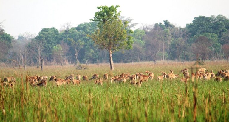 कञ्चनपुर, २५ मङ्सिर: शुक्लाफाँटा राष्ट्रिय निकुञ्जको घाँसे मैदानमा घाँस चर्दै गरेका बाह्रसिंगाको बथान ।-तस्वीर : राजेन्द्रप्रसाद पनेरु, रासस