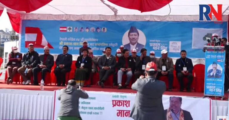 काठमाडौं, २५ मंसिर । नेपाली काँग्रेसको १४औं महाधिवेशनमा प्रकाशमान सिहंले उभापतिमा उम्मेद्वारी घोषणा कार्यक्रम सुरु भएको छ ।