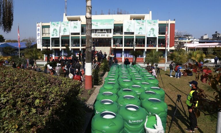 काठमाडौँ, २५ मङ्सिर: नेपाली काँग्रेसको १४औँ महाधिवेशन अन्तर्गत नयाँ कार्यसमितिका लागि हुने निर्वाचन प्रक्रियाका लागि राष्ट्रिय सभागृहमा मतपत्र राख्न ल्याइएका प्लास्टिकका ट्याङ्कीहरु ।-तस्वीर : प्रदीपराज वन्त , रासस