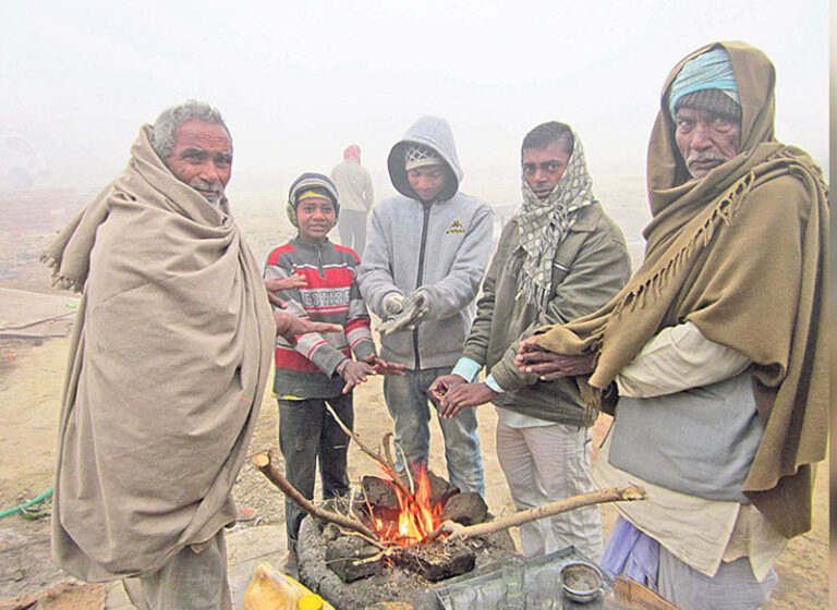 “हात, गोडा ठिङ्रिए, घुर बाल्नु है”, भङ्गाहा नगरपालिका–४ रामनगरको मुसहरी टोलकी हेमनी सादाले १० वर्षीया नातिनी रचनीलाई अह्राउनुभयो । ओढ्ने, ओछ्याउने र लगाउने न्यानो लुगा नहुँदा जाडोमा थुर्थुरी काम्दै रात कटाउने मुसहरका लागि जाडो छल्ने सहारा नै टोलमा बालिने ‘घुर’ बन्ने गरेको छ । ‘घुर’ अर्थात् पातपतिङ्गर बटुलेर आगो बालिने काम ।