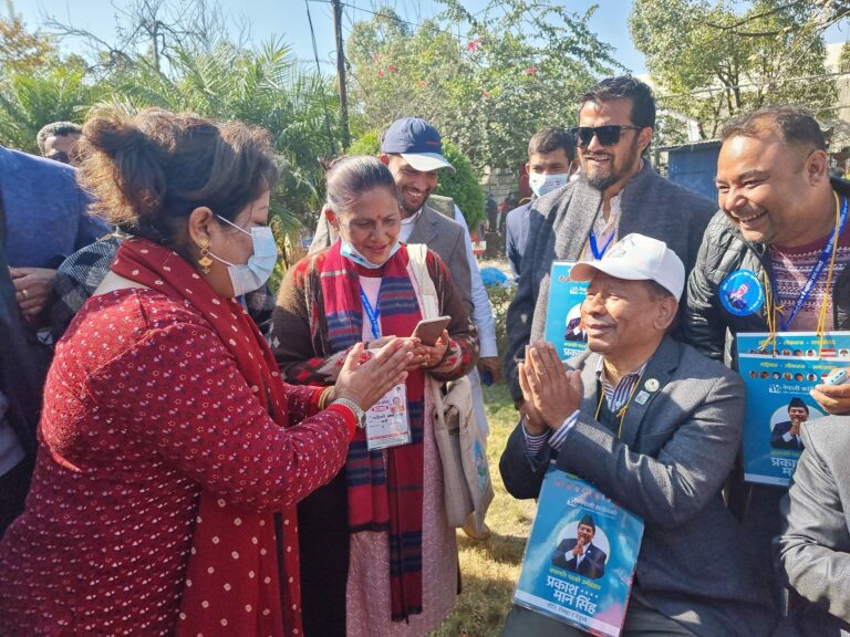 एक-अर्कालाइ भोट माग्दै सभापतिका उम्मेदवार प्रकाशमान र केन्द्रीय सदस्यकी उम्मेदवार डा. आरजु