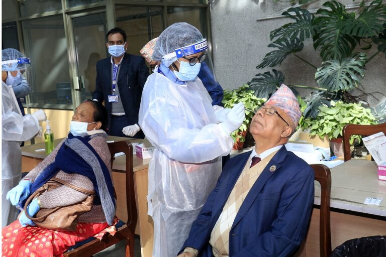 एन्टिजेन परीक्षण गराउँदै अध्यक्ष नेपाल