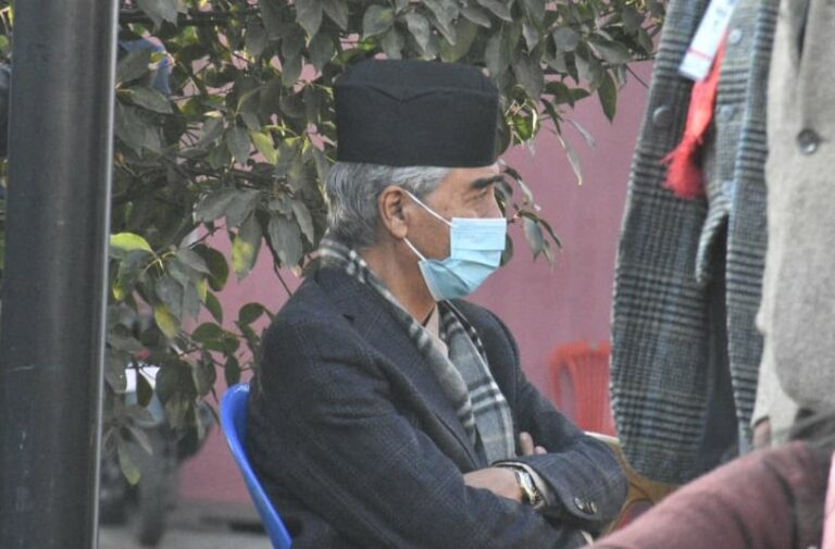 सभापति देउवाले मतदाताहरुलाई नमस्कार गर्दै पुनः मतदानस्थलमा आएका हुन् । मतदान केन्द्र बाहिर कुर्सीमा बसिरहेका उनले मतदाताहरुलाई मतदान गर्न जाँदा नमस्कार गरिरहेका छन् ।