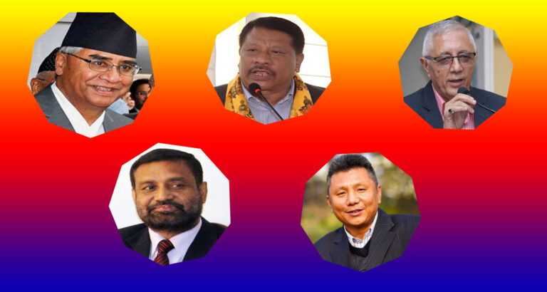 सभापतिका उम्मेदवार प्रकाशमान सिंह, डा. शेखर कोइराला, विमलेन्द्र निधि र कल्याण गुरुङ मत मागिरहेका देखिन्छन् ।
