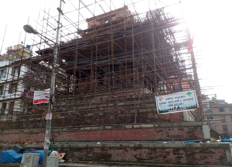 देवल पुनःनिर्माण गरिरहेको निर्माण व्यवसायीले माजुदेग : र दशअवतार मन्दिरसमेत पुनःनिर्माण गरिरहेकाले काममा अवरोध भइरहेको छ । माजुदेग : काठमाडौँ महानगरपालिकाको ठेक्कामा व्यवसायीेले ठेक्का पाएको हो । दशअवतार मन्दिर भने विभागकै ठेक्कामा यही निर्माण व्यवसायीले जिम्मा पाएको हो । वरिपरि फलामको ठण्डी ठड्याएर राखेको वर्षौँसम्म अलपत्र भएको स्थानीयवासी रविना मानन्धरले बताउनुभयो ।