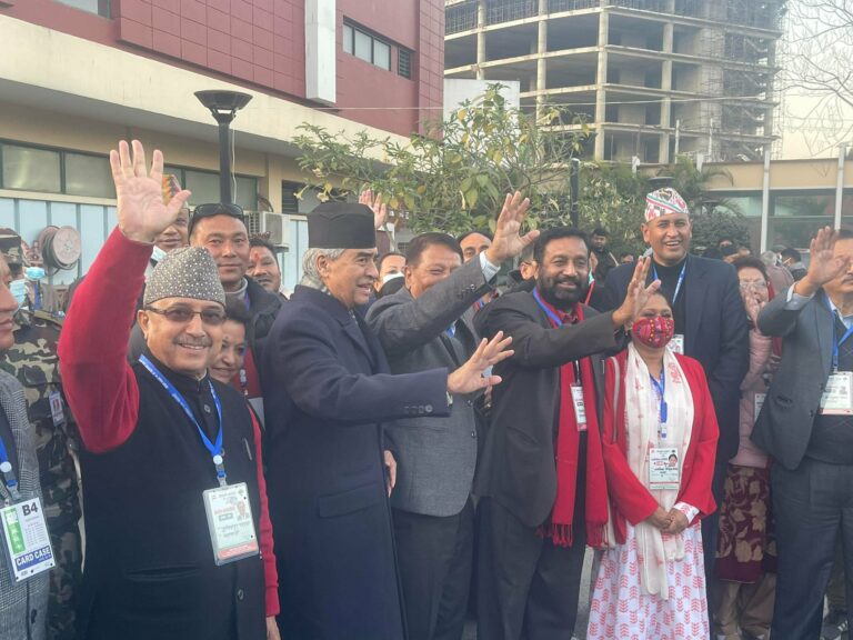 अहिले मतदान चलिरहँदा मतदानस्थलमा प्रकाशमान सिंह र बिमलेन्द्र निधिले शेरबहादुरलाई भोट मागिरहेका छन् । सोमबार आफूलाई सभापतिमा निर्वाचित गर्न भन्दै भोट मागेका सिंह र निधिले मंगलबार देउवालाई जिताउन भोट मागेका हुन् ।
