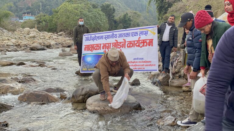 स्याङ्जाको आँधीखोलामा १ लाख माछाका भुरा छाडियो