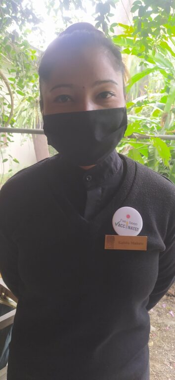सिद्धार्थथनगर, ४ पुस: मैैले खोप लगाइसके भन्ने ब्याच लगाएकी एक किशोरी चितवन बराही जगल रिसोर्टमा ।-तस्वीर : नरेश केसी-रासस