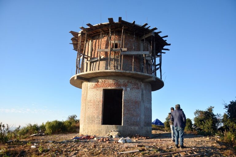 बागलुङ, ५ पुस: बागलुङको जैमिनी नगरपालिकास्थित पर्यटकीय लेक हाँडीकोटमा निर्माणाधीन भ्यूटावर । पर्यटक आकर्षित हुन थालेपछि पछिल्लो समय त्यहाँ पूर्वाधार निर्माणका काम धमाधम भइरहेका छन् ।-तस्वीर : रामबहादुर थापा-रासस