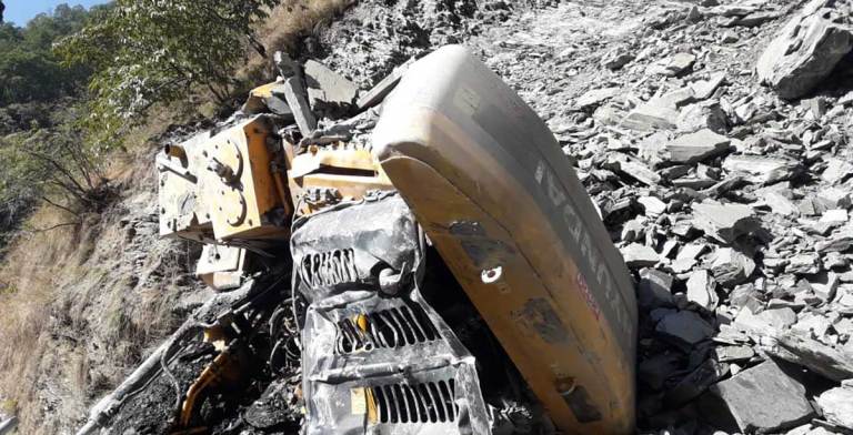 सडक निर्माणका क्रममा पहिरोले पुरिएर स्काभेटरसहित चालक बेपत्ता