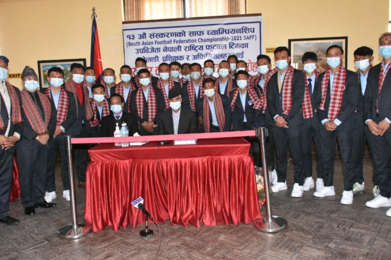साफ उपविजेता नेपाली फुटबल टोलीलाई नगद सहित सम्मान (फोटोफिचर)