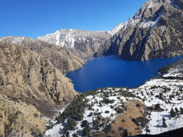 जाजरकोट, ७ पुस । मौसम खुलेसँगै उपल्लो डोल्पामा रहेको नेपालकै गहिरो र रङ फेर्ने तालको रुपमा परिचय बनाएको शे फोक्सुण्डो ताल । वारिपारि हिमालको बीचमा रहेको यो तलमा जीवित कुनै पनि प्राणी नभएको विश्वास छ । तस्वीरः हेमन्त केसी÷रासस