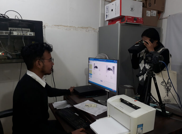 दाङ, ७ पुस । जिल्ला प्रशासन कार्यालय घोराहीमा राष्ट्रिय परिचय पत्रका लागि आँखाको लेन्सको फोटो खिचिँदै । तस्बिरः रञ्जिता अधिकारी÷रासस