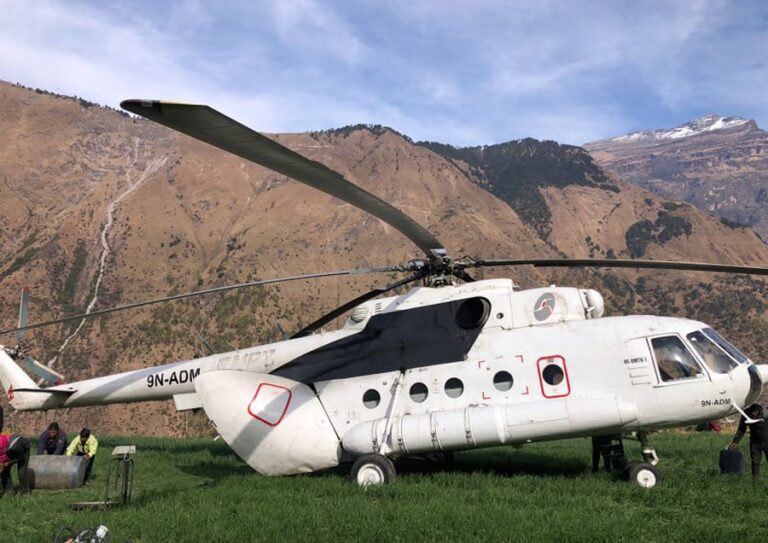 जाजरकोट, ९ पुस: सडकको अस्थायी ट्रयाक खोल्नका लागि आठबीसकोट नगरपालिकाले हेलिकोप्टरमा डोजर ढुवानी गरिरहेको छ ।