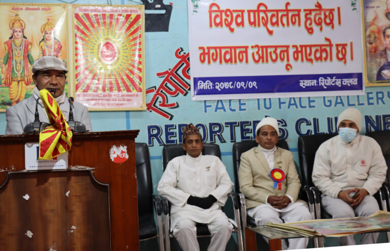 काठमाडौं, ९ पुस । ऊँ शान्ति धर्मलम्बी गुरुहरुहरुले कलियुग अन्तिम अवस्था पुगेको धारणा राखेका छन् । आज (शुक्रबार) रिपोर्टर्स क्लब नेपालमा पत्रकार सम्मेलन गरेर गुरुहरुहरुले कलियुग अन्तिम अवस्थामा पुगेर सतयुगमा प्रवेश गर्न लागेको बताएका हुन् ।
