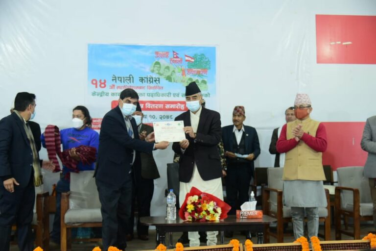 निर्वाचित पदाधिकारी एवं सदस्यलाई (निर्वाचित भएको प्रमाण पत्र) वितरण कार्यक्रम जारी छ।। सभापति शेरबहादुर देउवासहित १३४ जनाले प्रमाणपत्र लिने समय तोकिएको छ । निर्वाचन समितिले सुरुमै सभापतिमा निर्वाचित शेरबहादुर देउवालाई प्रमाणपत्र प्रदान गरेको थियो ।