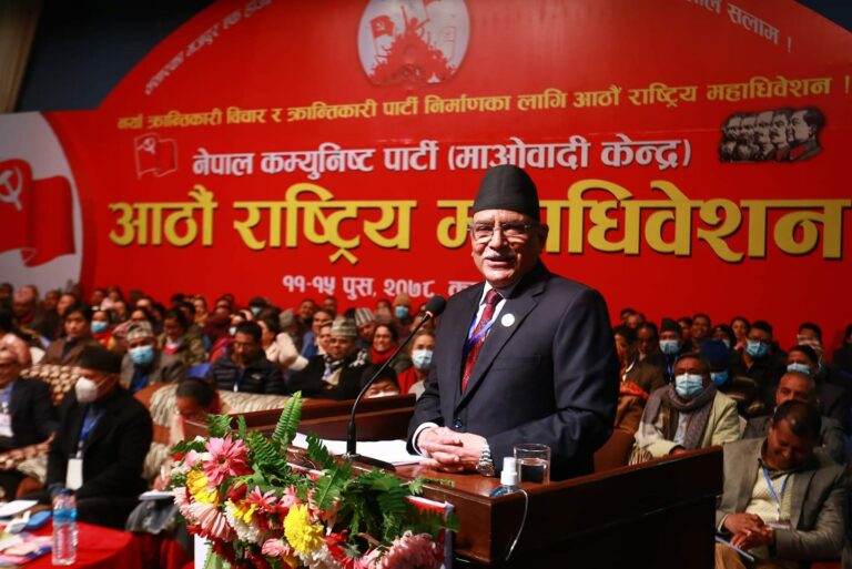 काठमाडौं, १३ पौष । नेकपा माओवादी केन्द्रका अध्यक्ष पुष्पकमल दाहाल प्रचण्डले अमेरिकी सहयोगसम्बन्धी एमसीसी कुनै हालतमा पारित नगर्ने स्पष्ट संकेत गरेका छन् । उनले पार्टीको महाधिवेशनमा प्रस्तुत गरेको राजनीतिक प्रतिवेदनमा अमेरिकाले युद्ध चाहेको आरोप समेत लगाउँदै त्यस्तो संकेत गरेका हुन् ।