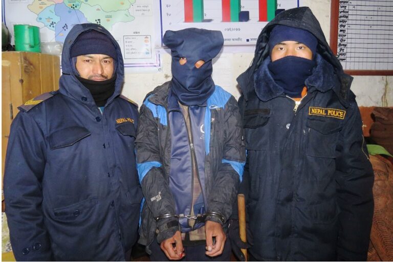 खलङ्गा, १६ पुसः जुम्लाको चन्दननाथ नगरपालिका –१ कुलालबाडा सडक नजिकै रहेको ओडारमा बस्दै आएका स्थानीय चेतबहादुर कुलालको हत्याको अभियोगमा पक्राउ परेका रानागाँउका २० वर्षीय रत्न रावतलाई सार्वजनिक गर्दै जिल्ला प्रहरी कार्यालय जुम्ला । कुलाललाई यही पुस १३ गते मृत अवस्था फेला पारिएको थियो ।-तस्बिर : विजय रावत/रासस