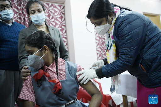 २० पुस : भारत सरकारले त्यहाँका १५ देखि १८ वर्ष उमेरका युवायुवतीहरुलाई कोरोनाविरुद्धको खोप लगाउन सुरु गरेको छ । भारतमा ओमिक्रोन भाइरसका सङ्क्रमितहरु बढ्दै गएपछि सरकारले यहाँ यो उमेर समूहका नागरिकलाई खोप लगाउन थालेको अधिकारीहरुले जनाएका छन् । भारतका स्वास्थ्यमन्त्रीले सो खोप लगाएको तस्बिर सार्वजनिक गरेका थिए ।