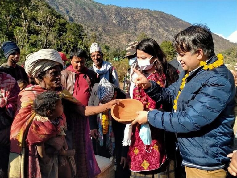 कर्णाली, २४ पुस: सुर्खेतको सिम्ता गाउँपालिका-४ कालीखोलास्थित राउटे बस्ती निरीक्षण गर्दै सहरी विकासमन्त्री रामकुमारी झाक्री । अस्थायी आवासको प्रस्ताव लिएर प्राविधिक टोलीसहित मन्त्री झाक्री राउटे बस्ती पुगेकी हुन् ।-तस्बिर : प्रकाश अधिकारी, रासस