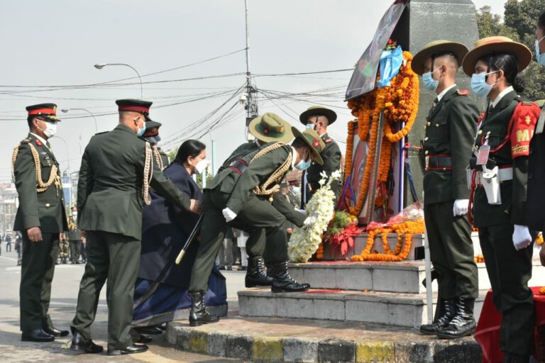 काठमाडौं, २७ पुस : राष्ट्रपति विद्यादेवी भण्डारीले पृथ्वीजयन्तीको अवसरमा मंगलबार पृथ्वीनारायण शाहको शालिकमा माल्यार्पण गरेकी छन् ।