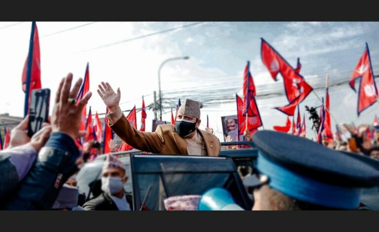काठमाडौँ, २७ पुस। पूर्वराजा ज्ञानेन्द्र शाह पृथ्वीनारायण शाहको शालिकमा माल्यार्पण गर्न सिंहदरबार अगाडी पुग्दा आफ्नो समर्थकहरुलाई हात हल्लाएर अभिनन्दन तथा सुभकामना व्यक्त गर्दै गरेको तस्बिर । पूर्वराजा ज्ञानेन्द्र शाह सिंह दरबार पुग्दा जनसागर ओर्लिएको थियो। सोहि अबसरमा कैद गरिएको उनको तस्बिर।-Photo Source: Paras shah