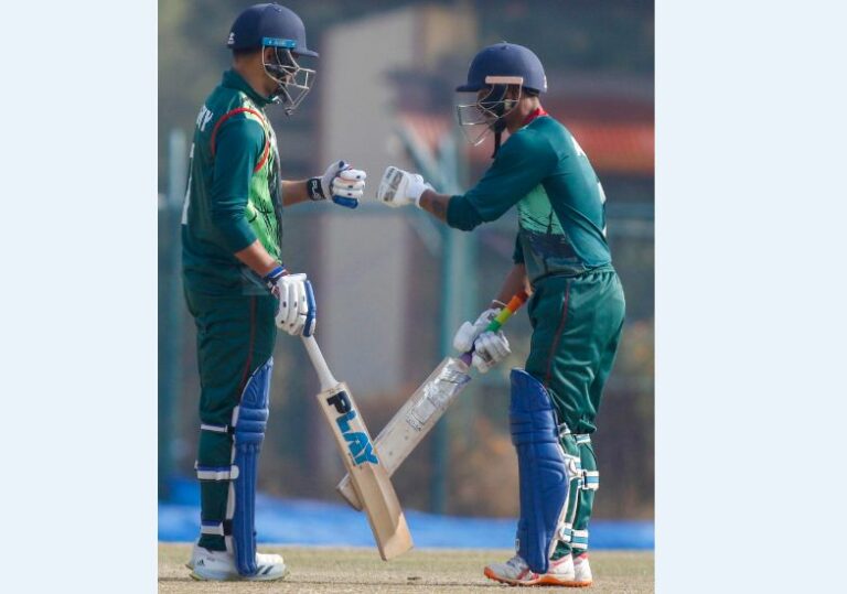 यस्तै, नारायण जोशी, हेमन्त धामी र शेर मल्लले समान एक–एक विकेट लिए ।