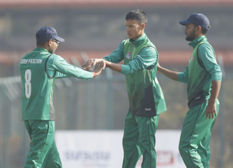 प्रदेश १ का लागि कमल खत्री, फिर्दोस अन्सारी, मुकुन्द यादवले एक–एक विकेट लिए ।