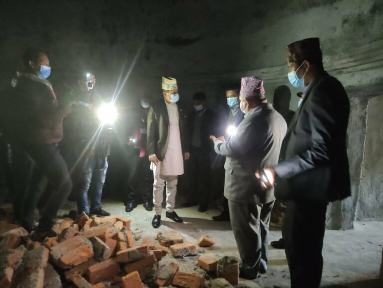 काठमाडौं, २ माघ । नारायणहिटी दरबार संग्राहालयको बंकरभित्र मन्त्री प्रेम आले पसे । बतास समूहले निर्माण गरी भत्काइरहेको संरचना हेर्न भ्याए ।
