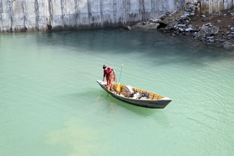 वालिङ, ३ माघ: स्याङ्जाको मिर्मीस्थित आँधीमुहानमा डुङ्गाको साहारामा जाल हानेर माछा मार्दै स्थानीय महिला ।-तस्बिर : तोलाकान्त बगाले-रासस