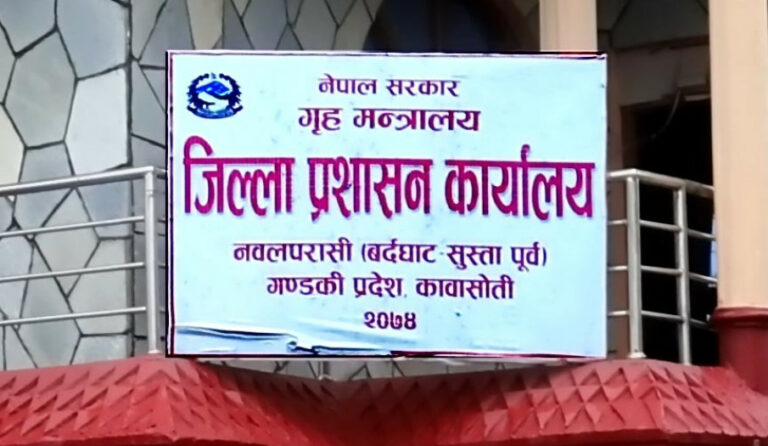 परासी, ४ माघ: कर्मचारीमा कोरोना सङ्क्रमण पुष्टि भएपछि जिल्ला प्रशासन कार्यालय नवलपरासी(बर्दघाट सुस्ता पश्चिम)ले एक हप्ताका लागि सेवा प्रवाह स्थगित गरेको छ ।