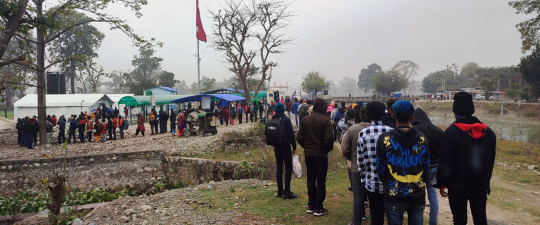 श्रम गर्न गएका नेपालीहरु पश्चिमी सीमानाका गड्डाचौकी हुँदै भारतबाट फर्किने क्रम बढेको हो । सिमा–नाकामा आज भिडभाड देखिएको थियो । तस्बिरः राजेन्द्रप्रसाद पनेरु÷रासस