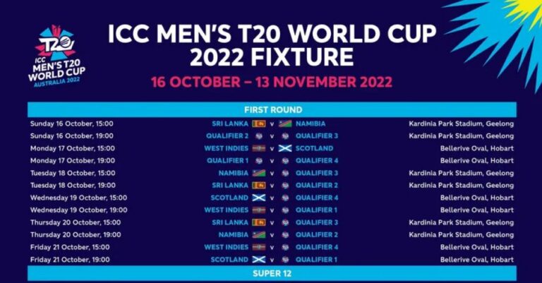 प्रतियोगिताको सुपर १२ को खेलहरु भने अक्टोबर २२ बाट सुरु हुनेछ ।