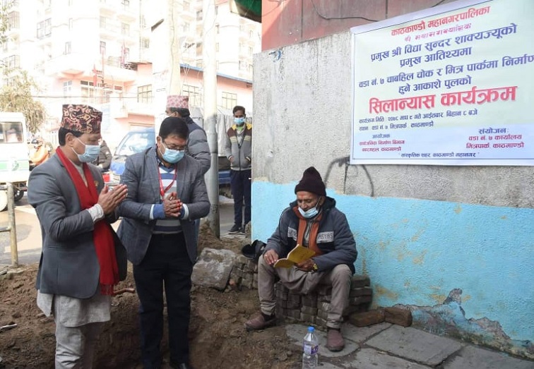 काठमाडौँ, ९ माघ: काठमाडौँको चावहिल चोक र मित्रपार्कमा आकाशे पुल बन्ने भएको छ । काठमाडौँ महानगरपालिकाको भ्याटबाहेक रु एक करोड ३० लाख ४२ हजार ५७८ लागतमा बन्न लागेको उक्त पुलको आज महानगर प्रमुख विद्यासुन्दर शाक्यले शिलान्यास गरे ।