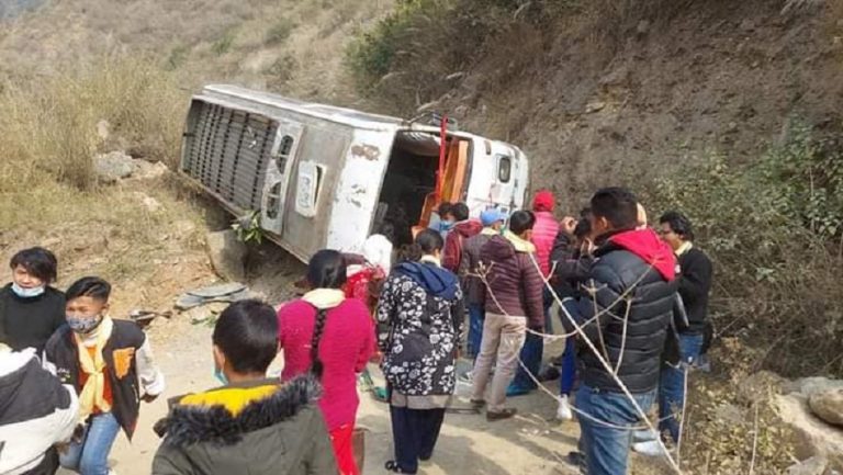कोशी पारी राजेन्द्र पन्त सञ्चालक रहेको क्रसरमाथिको मोडमा बस पल्टिएको थियो । घटनामा घाइतेहरुको उपचार भएको जनाइएको छ ।
