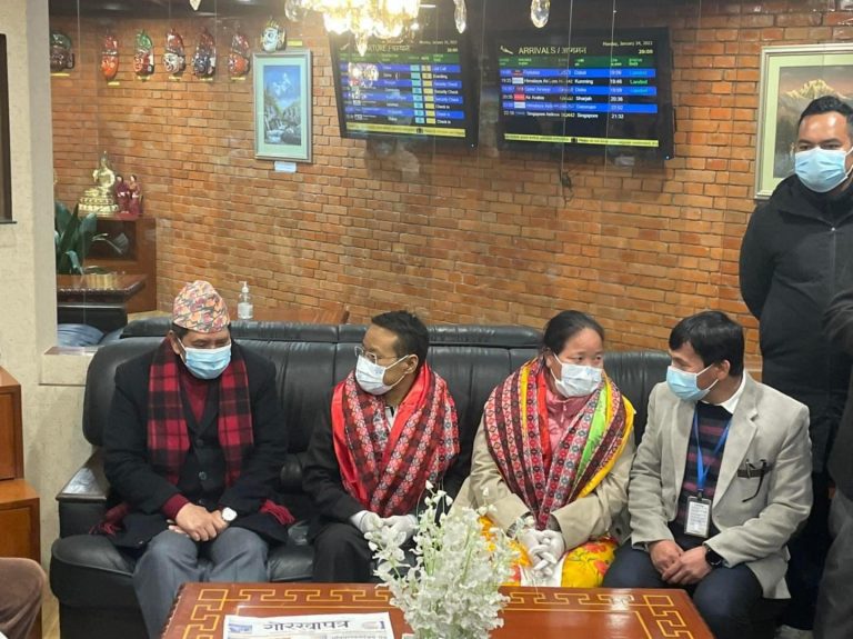 उनलाई विमानस्थलमा स्वागत गर्न नेता नारायणकाजी श्रेष्ठ पुगेका छन् । नेता पुन स्वास्थ्य सामाग्री लिन गएको हिमालयन एयरलाईन्सको कार्गो बिमानबाट आज साँझ नेपाल आईपुगेका हुन् ।